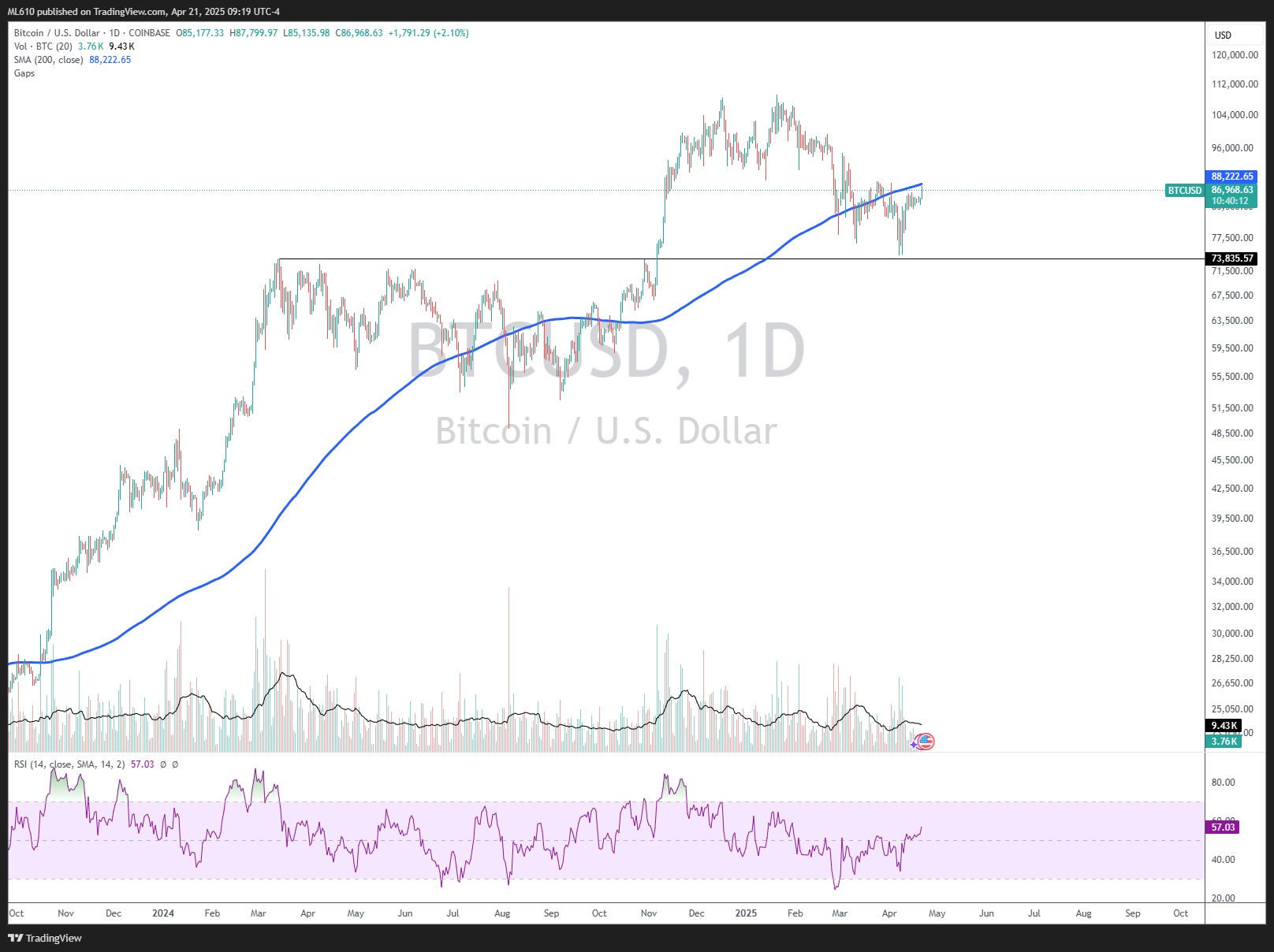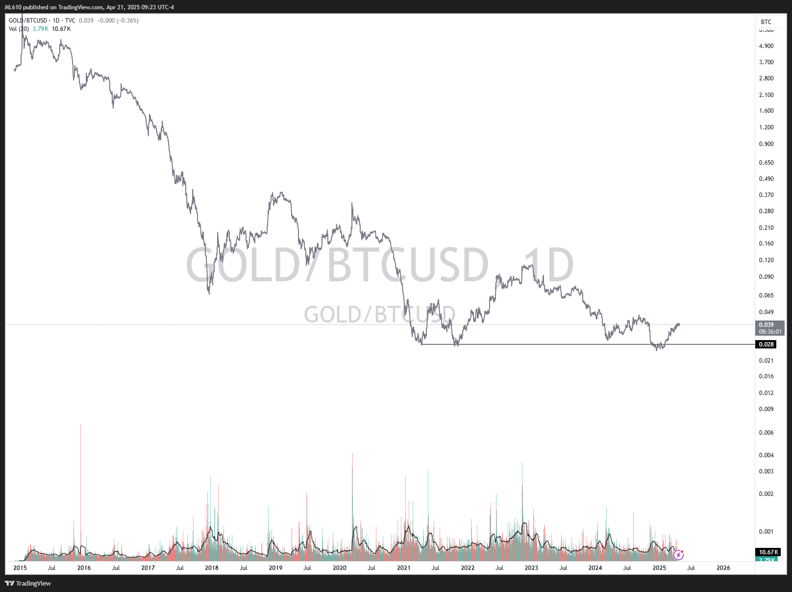 Everything the Bitcoin bulls were preaching it solved is beginning to play out from a storyline perspective - US Dollar weakness, Trade Wars, US Debt focus. But it’s been Gold thus far that’s been the benefactor, not its “digital” counterpart. Perhaps the catch-up trade is coming.