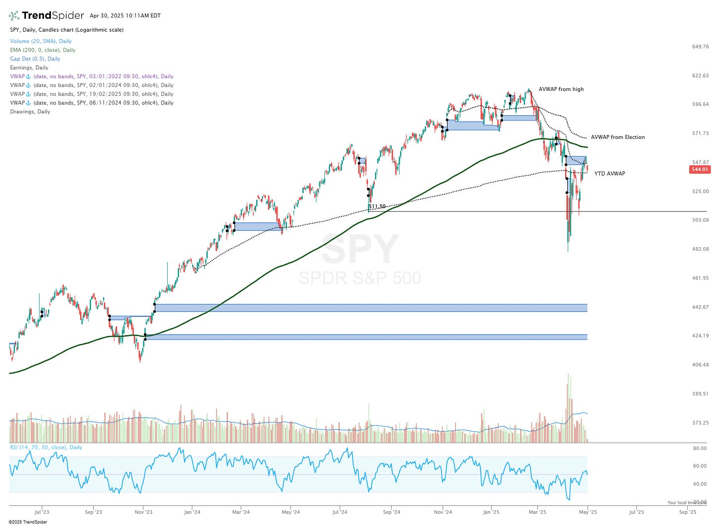 SPY 0.00%↑ filled the “Liberation Day” gap to the penny yesterday, and is pulling back tody.