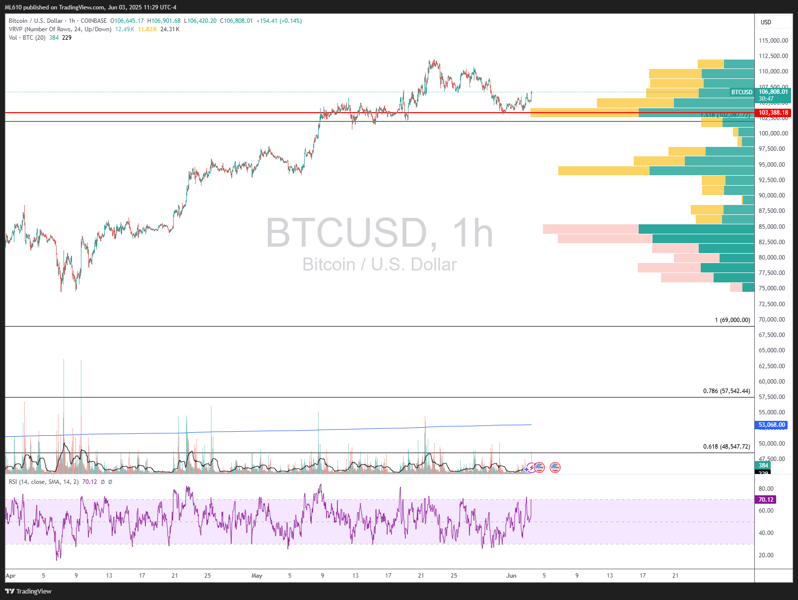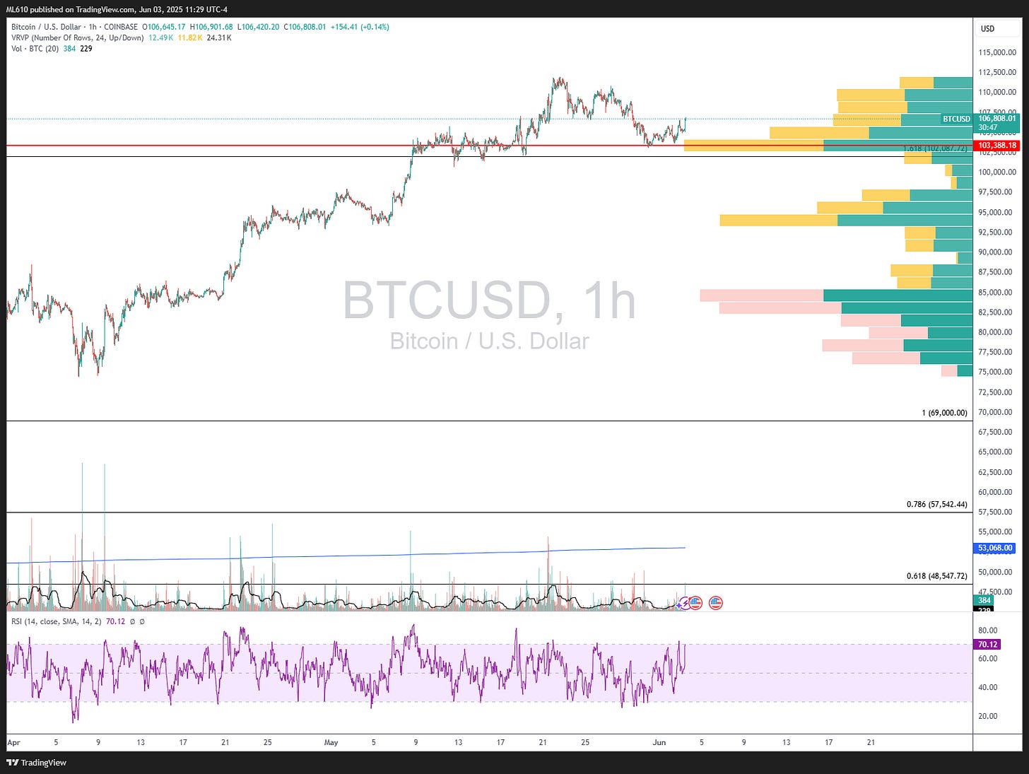 The hourly chart on $BTC is perking -