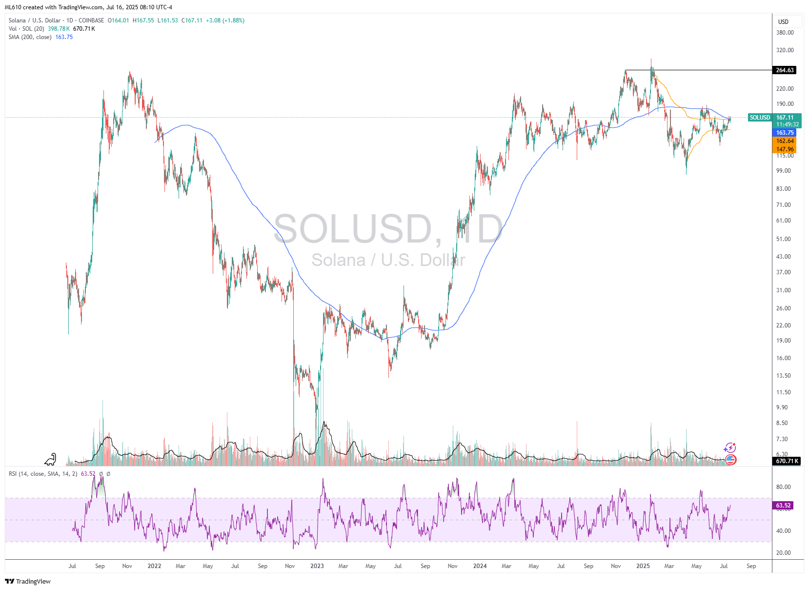 Solana$SOLMichaelJul 16, 2025Share200 day moving average, AVWAP’s from local high and low. Solana currently above all with rising momentum. I’m long against those levels.