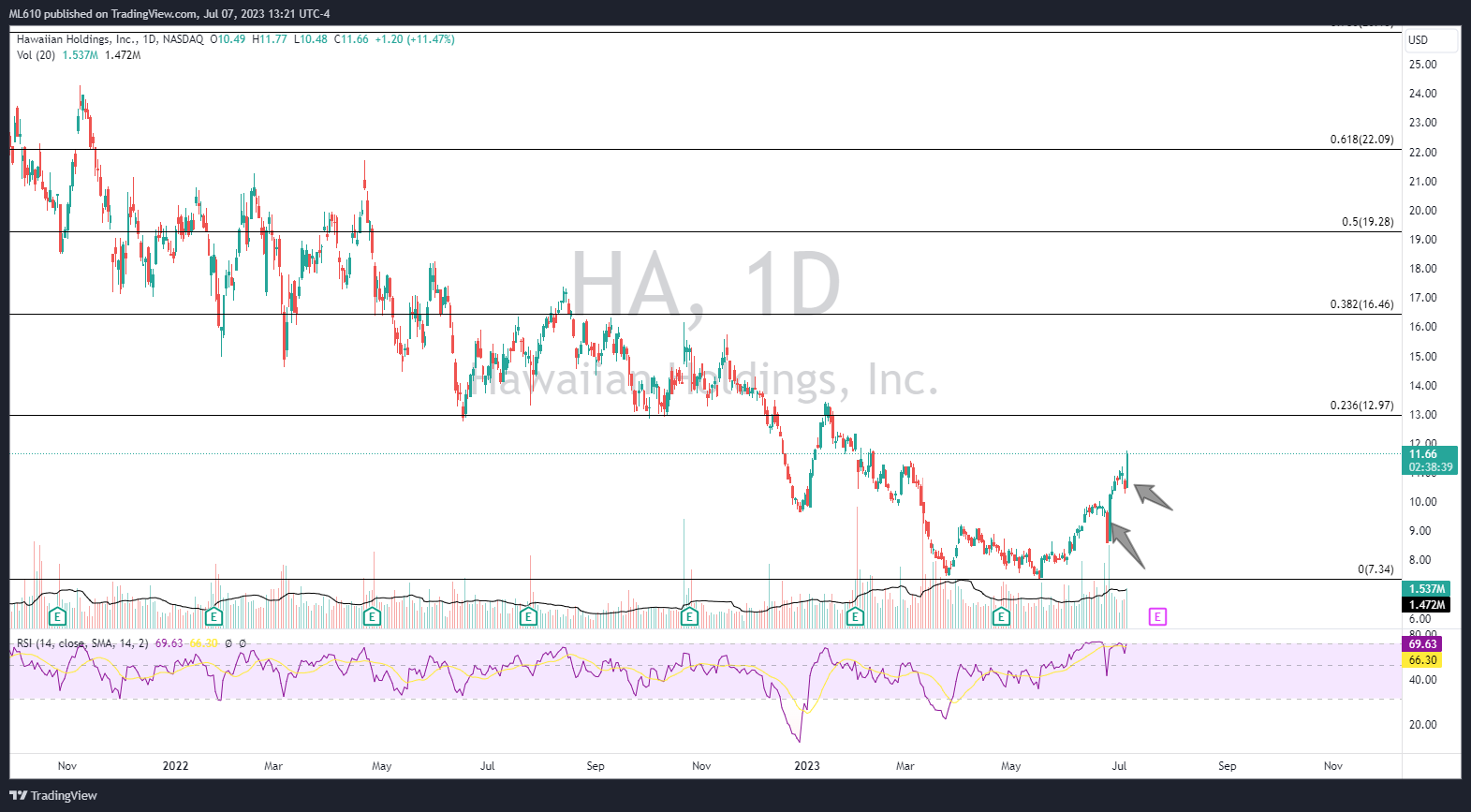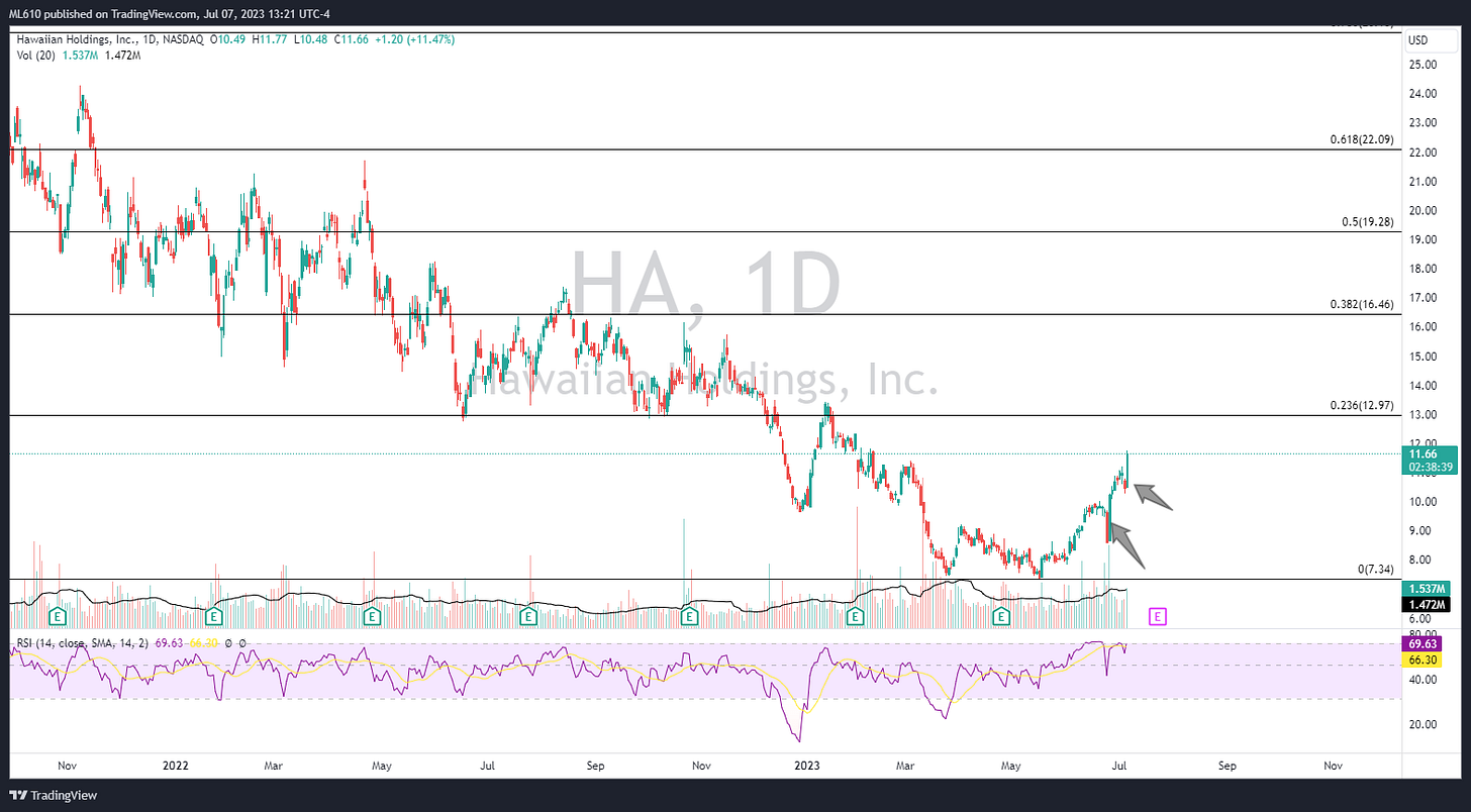 A pair of sizable reversals in HA 0.00%↑ over the past 2 weeks.